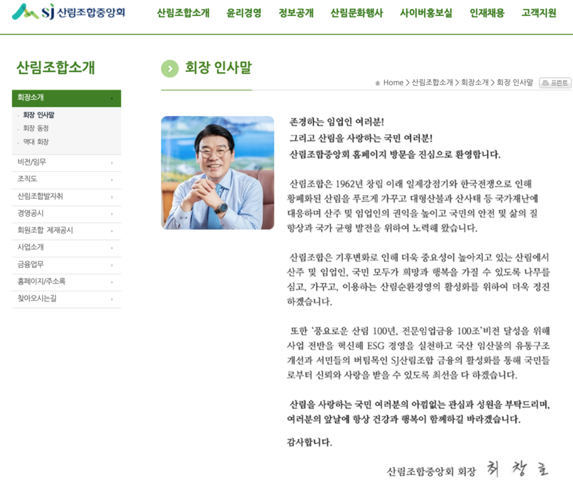 ▲ 산림조합중앙회 홈페이지 갈무리. |
