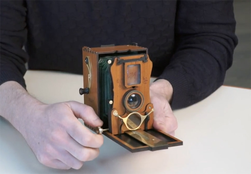 클래식한 접이식 카메라의 디자인에 인스탁스 필름으로 즉석 사진 촬영 가능