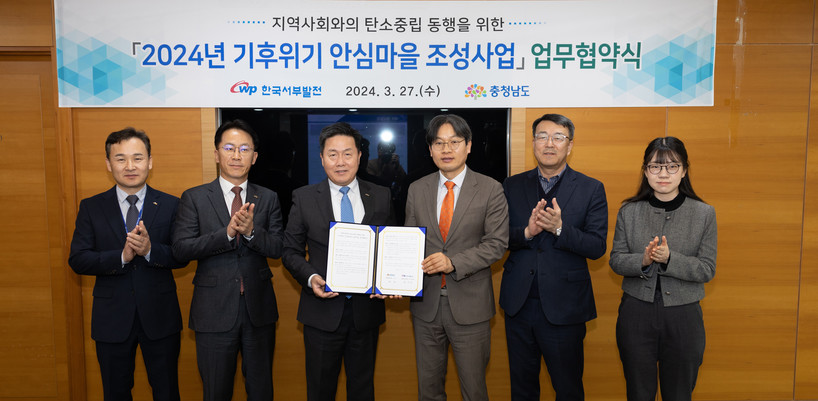 서부발전은 3월 27일(수) 충남 태안 본사에서 충청남도(도지사 김태흠)와 ‘2024년 기후 위기 안심마을 조성 사업 업무협약’을 체결했다.