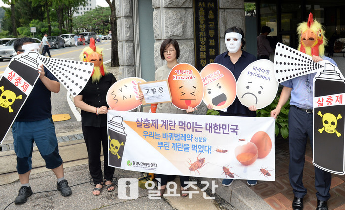 ▲지난 2017년 발생한 살충제 계란 파동 당시 한 시민단체가 '살충제 계란먹인 대한민국 전현직 책임자' 고발 기자회견을 하고 있는 모습. |
