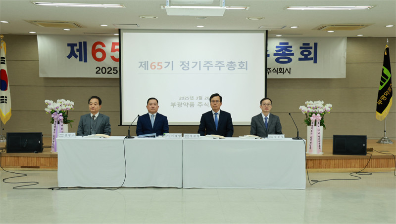 [일요주간 = 하수은 기자] 부광약품은 26일 서울 동작구 본사 대강당에서 제65기 정기주주총회를 열고 주요 안건을 모두 원안대로 승인했다고 밝혔다.