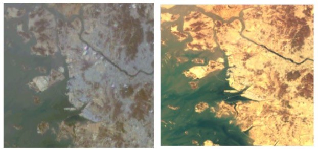 | ▲ 왼쪽부터 천리안1호, 천리한 2B호가 촬영한 인천 부근 한반도 모습 (사진=과기정통부) |
