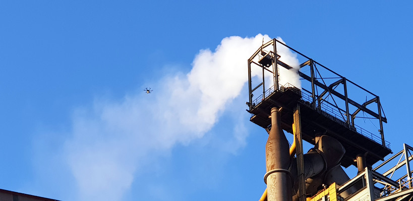 ▲ 지난해 5월 국립환경과학원은 드론을 띄워 포스코 광양제철소 제3고로 브리더에서 배출되는 미세먼지, 일산화탄소, 이산화탄소, 질소산화물, 황산화물 등의 농도를 측정했다.(사진=뉴시스 제공)