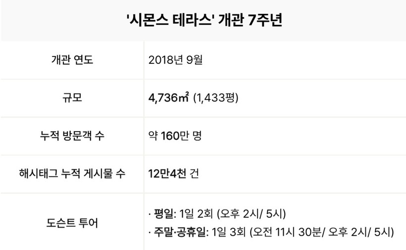 [일요주간=이수근 기자] 수면 전문 브랜드 시몬스(대표 안정호)의 ESG 거점이자 복합문화공간 ‘시몬스 테라스(SIMMONS Terrace)’가 개관 7주년을 맞았다.