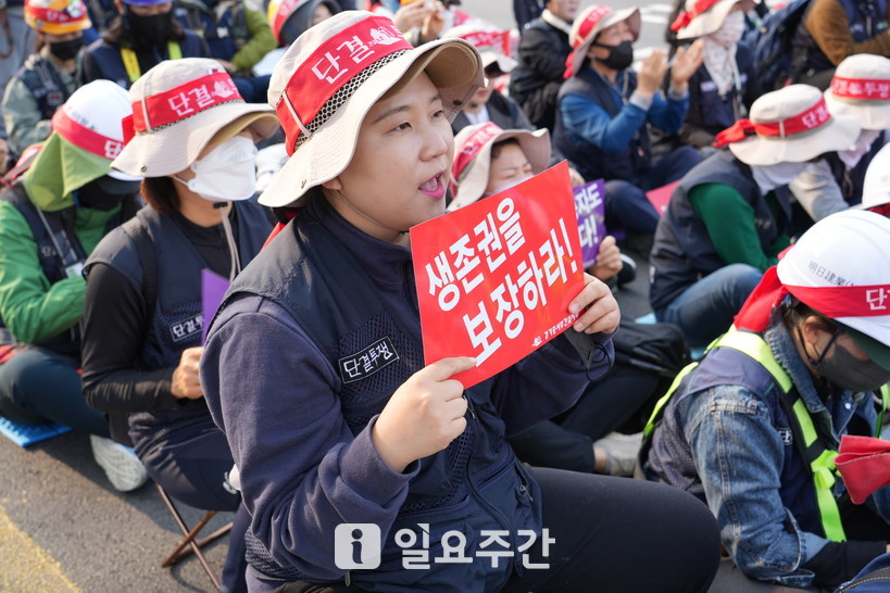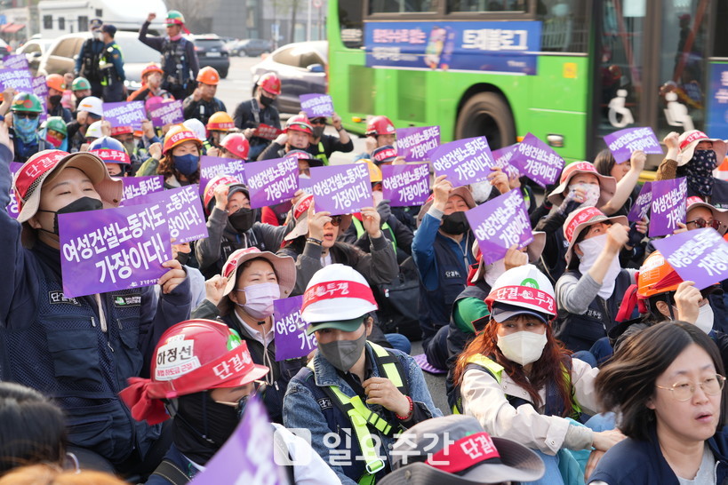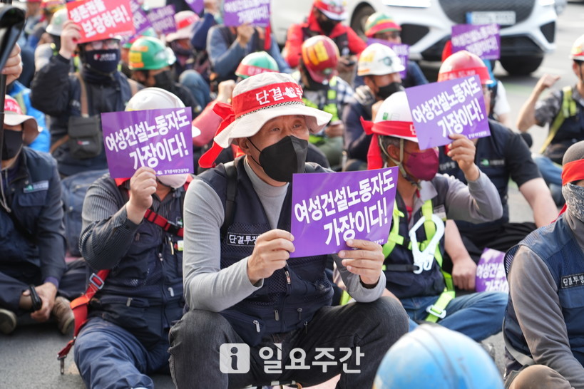 [일요주간 = 이수근 기자] “여성노동자도 가장이다. 여성도 일꾼이다. 여성건설노동자의 생존권을 뺏지 마라!”