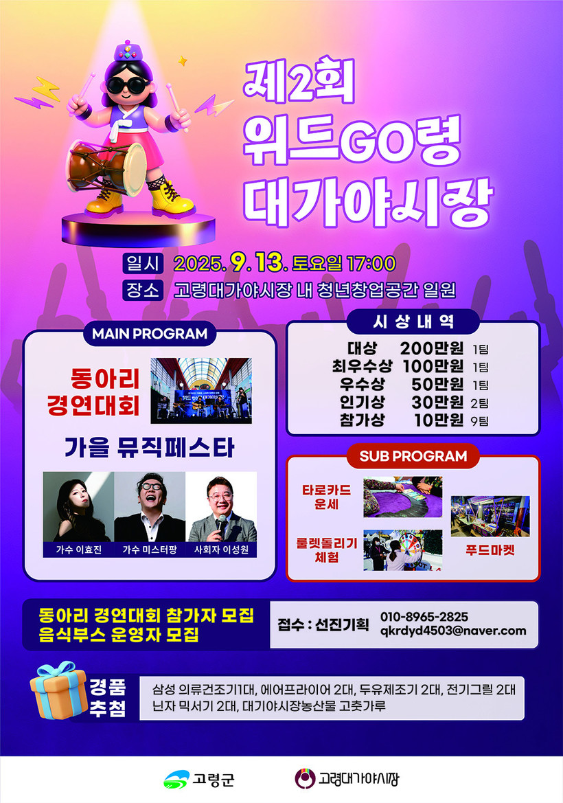 [일요주간=최부건 기자] 고령군(군수 이남철)은 오는 13일 오후 5시, 고령대가야시장 청년창업공간 일원에서 ‘제2회 위드GO령 대가야시장’ 행사를 개최한다.