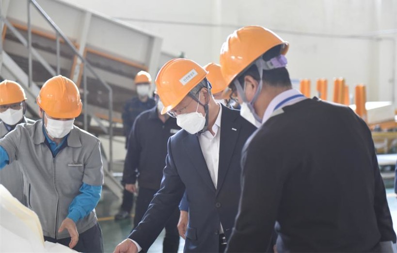 | ▲ 반장식 조폐공사 사장(오른쪽 두 번째)이 현장 점검을 하고 있다.(사진=조폐공사) |
