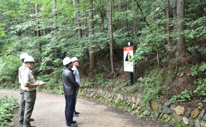 | ▲ 사진은 지난 8월 18일 국립공원공단 권경업 이사장이 여름철 자연재난대책 기간 중 호우로 인한 피해 발생 여부를 확인하기 위하여 태백산국립공원사무소를 방문해 현장 점검을 하고 있는 모습. (사진=태백산국립공원사무소 제공) /출처=newsis. |