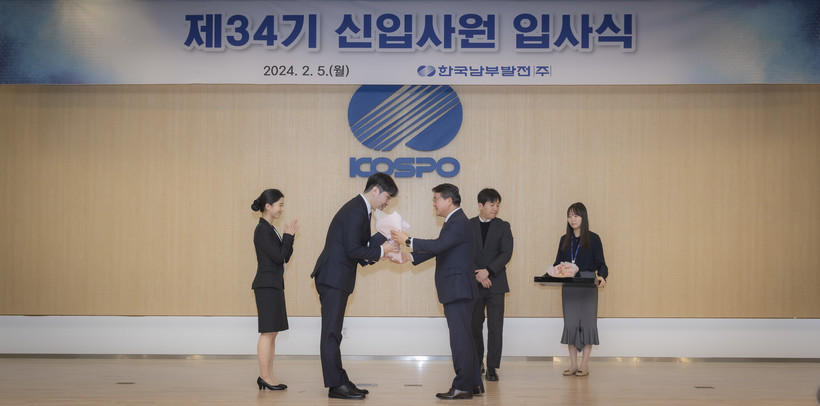 [일요주간=김영란 기자] 한국남부발전(주)(사장 이승우, 이하 ‘남부발전’)은 5일 부산 본사 대강당에서 가족 초청 입사식을 개최했다고 밝혔다.
