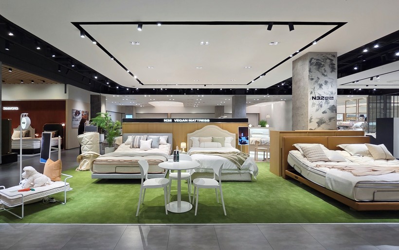 7층에 들어선 신규 매장은 자연과 비건(VEGAN)을 형상화한 각종 조형물, 카펫, 오브제 등으로 꾸며졌다. 매장 내에는 ▲N32 폼 매트리스 ▲N32 스프링 매트리스 ▲N32 레귤러 토퍼 ▲N32 모션베드 ▲펫 매트리스 ‘N32 쪼꼬미’ 등 N32 전 제품 라인업이 진열돼 자유로운 체험이 가능하다.