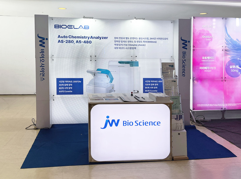 JW바이오사이언스는 지난 13일 서울 스위스 그랜드 호텔에서 열린 대한개원의협의회 ‘제34차 추계 연수교육 학술세미나’에 참가해 올해 국내 공급을 시작한 바이오이랩(BIO E-LAB)의 전자동 생화학 분석 장비 ‘AS-280’과 ‘AS-480’ 2종을 전시하는 한편 JW바이오사이언스가 자체 개발한 일반 시약 및 특수 시약 제품을 홍보하는 시간을 가졌다.