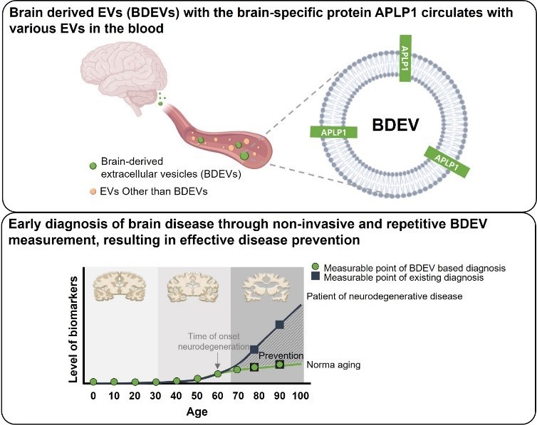 이번 연구는 ‘혈액 유래 APLP1+ 세포외 소포체는 뇌 질환의 조기 진단을 위한 잠재적인 바이오마커(Blood-derived APLP1+ extracellular vesicles are potential biomarkers for the early diagnosis of brain diseases, IF: 11.7)’라는 제목으로 국제학술지 'Advanced Science' 1월호에 게재됐다.
