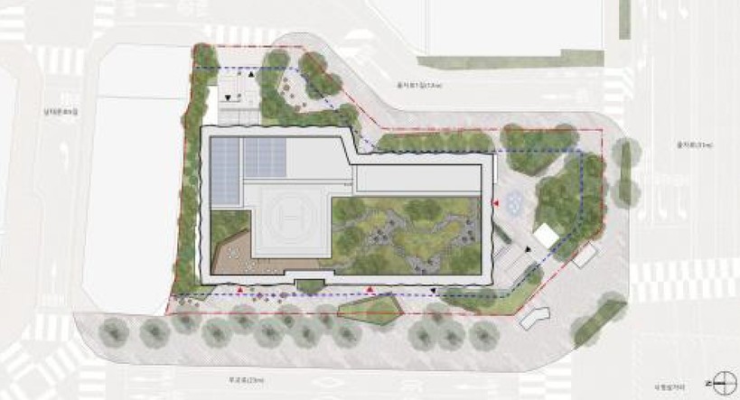 아울러 서울광장과 덕수궁 등 서울의 대표 명소를 조망할 수 있는 대지의 특성을 고려한 최상층 개방공간과 근린생활시설, 전용 엘리베이터를 계획하여 시민들이 언제나 쉽게 접근하고 휴식할 수 있도록 접근성과 공공성을 강화하였다.