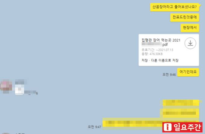 ▲집행관 접대 관련 카톡 내용.(제보자 제공) |