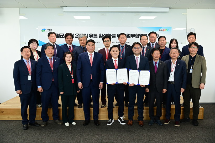 [일요주간=최부건 기자] 고령군(군수 이남철)은 2025년 4월 16일(수), 서울 송파구 쿠팡 본사에서 『고령농·특산물 온라인판로 확대를 위한 업무협약(MOU)』을 체결했다.