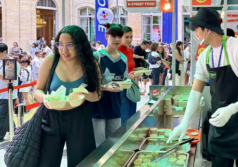 ▲ CJ제일제당의 파리 ‘비비고 시장’에서 방문객들이 K-푸드를 주문하고 있는 모습. (사진=CJ그룹 제공) |