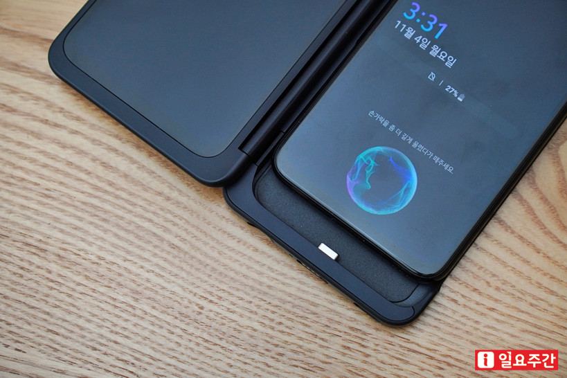 | ▲ 듀얼스크린을 끼운 후 충전하려면 어댑터가 필요하다 (사진=지혜수 기자) |
