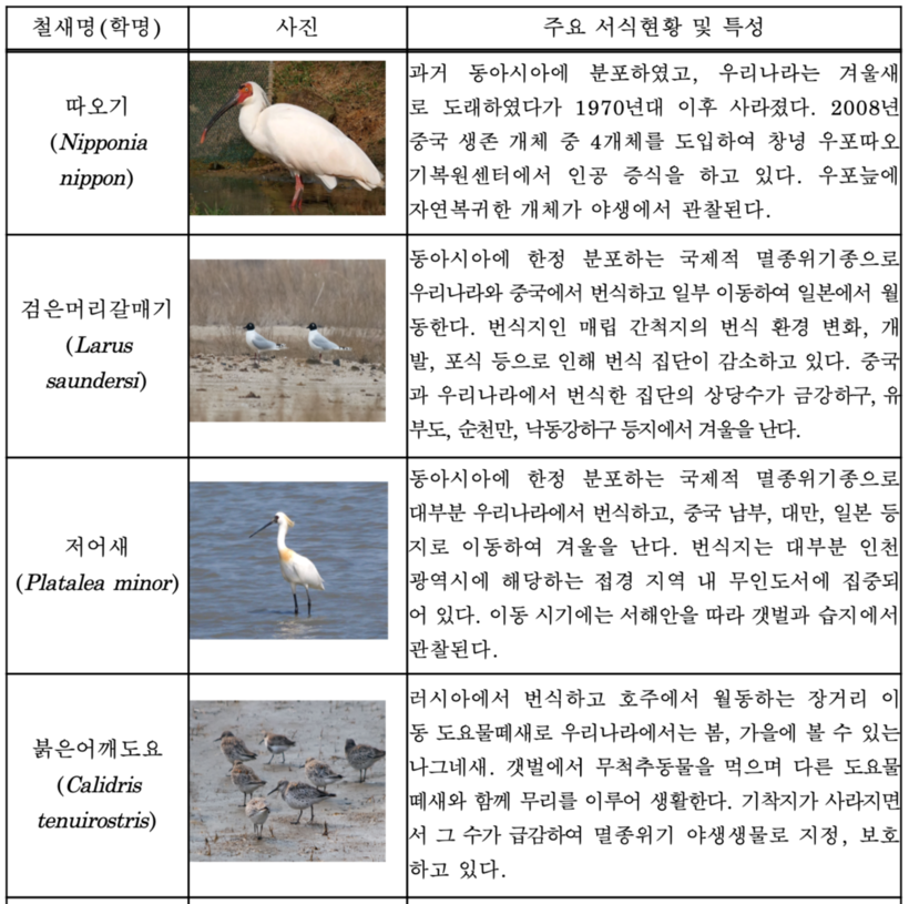철새는 국경을 자유로이 넘나드는 생태적인 특성으로 인해 개체 보호 및 서식지 보전을 위해 국가 간 협력이 중요하다.