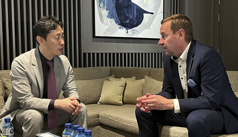 | ▲ 윤형중 한국공항공사 사장(왼쪽)이 킴모 마키 핀란드 공항공사 CEO(오른쪽)와 부산-헬싱키 노선의 운항개시를 위한 협력방안을 논의하고 있다.(사진=한국공항공사) |