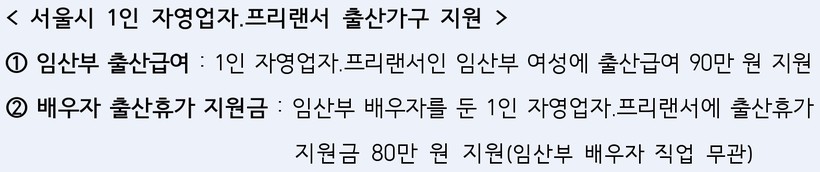▲ 서울시 1인 자영업자.프리랜서 출산가구 지원 (이미지=서울시) |