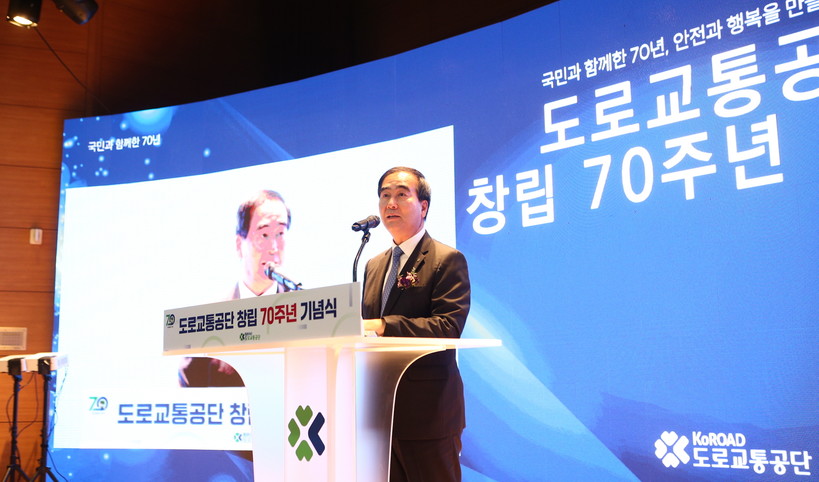 | ▲ 도로교통공단 창림 70주년 기념식에서 이주민 도로교통공단 이사장이 기념사를 하고 있다. <사진=도로교통공단> |