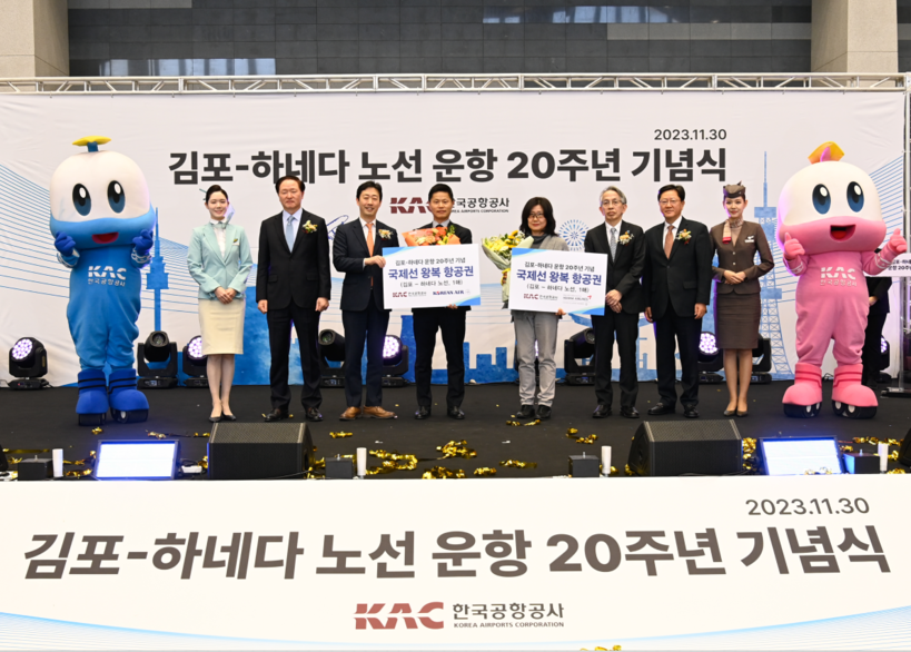 [일요주간=김영란 기자] 한국공항공사(사장 윤형중)는 30일, 김포공항 국제선 청사에서 동북아 비즈니스 노선의 대표주자인 '김포-하네다 노선'의 취항 20주년을 축하하는 기념행사를 개최했다.
