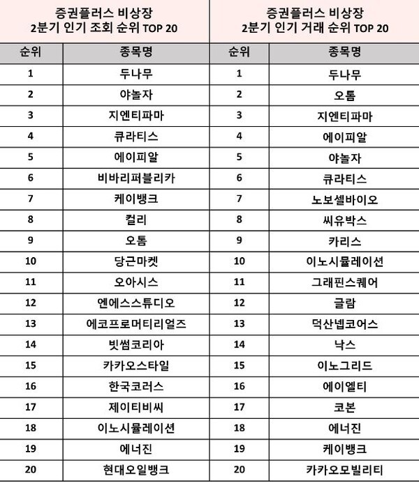 | ▲ 증권플러스, 비상장 2분기 인기 조회·거래 종목 발표(이미지=두나무) |