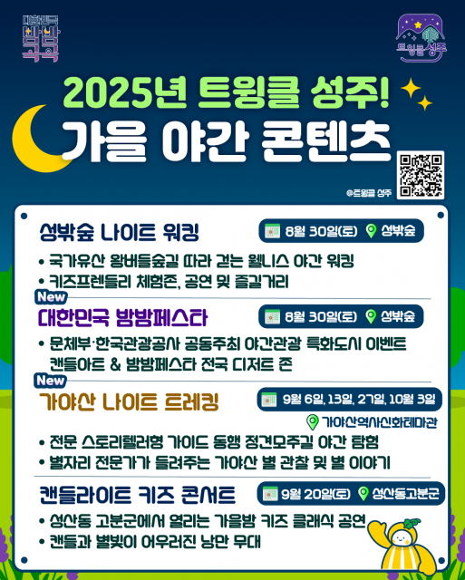 ▲ 2025년도 가을 성주 야간관광 프로그램(이미지=성주군청)