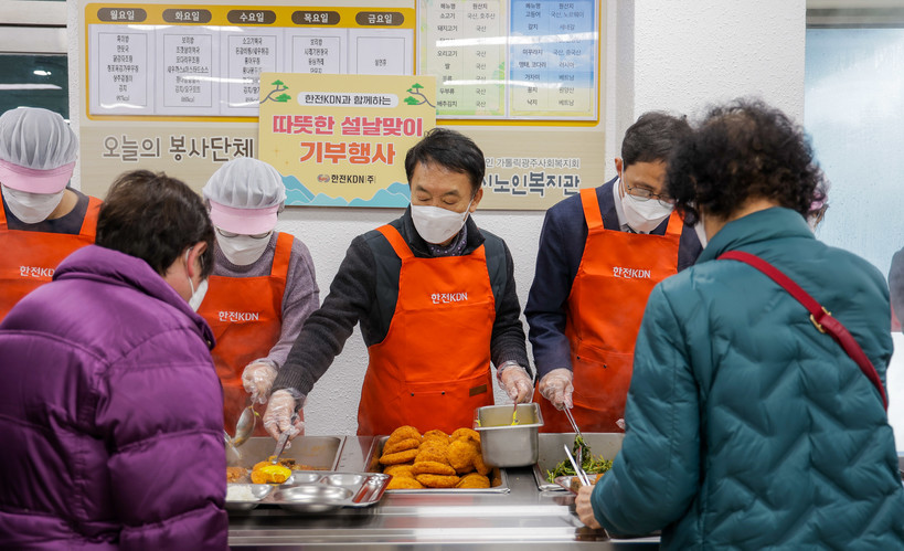 ▲ 나주시 노인복지관 배식 봉사활동을 펼치는 한전KDN 임직원들 (사진=한전KDN) |