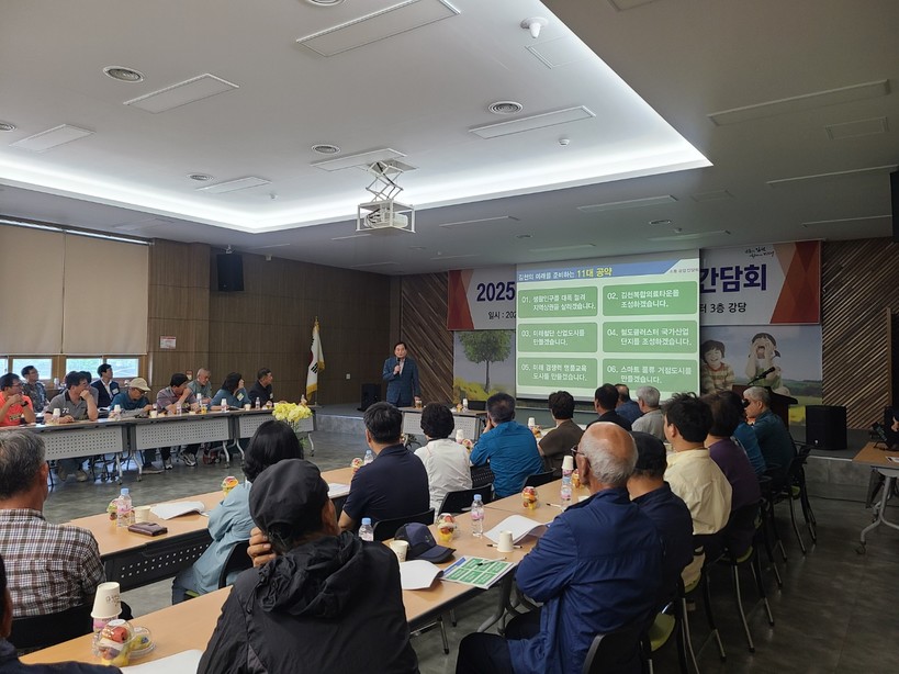 배낙호 김천시장은 앞으로의 주요 공약과 시정 운영 방향을 설명하고, 주민들은 건의 사항과 시정 발전 방안에 대한 의견을 자유롭게 발표하며, 70여 분 동안 서로 경청하고 응답하는 시간을 가졌다.