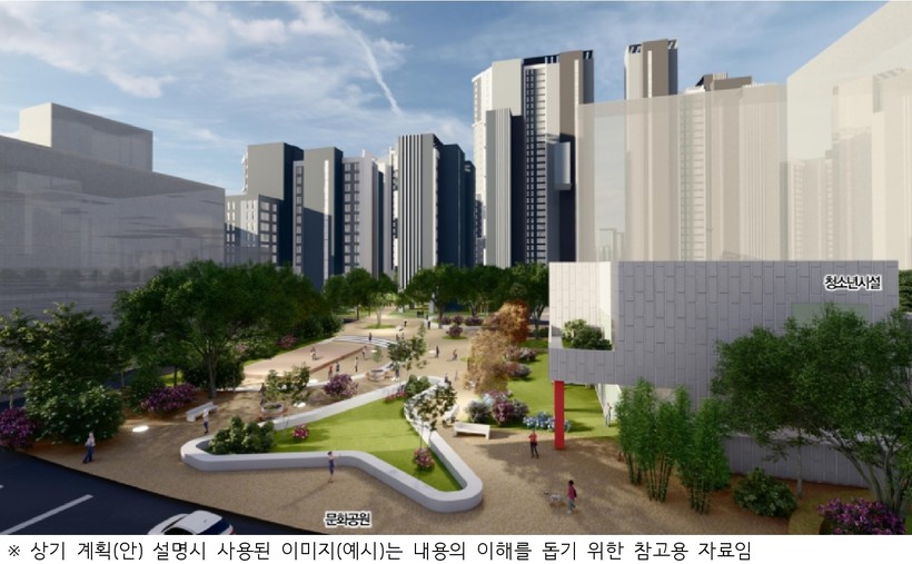 ▲ 공원 조성 예시도_ 쾌적하고 활력있는 주거환경과 여가를 고려한 대상지 북측 문화공원/청소년시설 배치(이미지=서울시) |