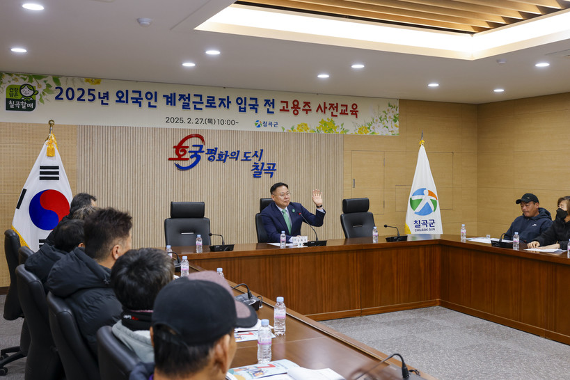[일요주간=최부건 기자] 칠곡군은 27일 칠곡군청에서 2025년 외국인 계절근로자 신청 농가주(이하 고용주) 53명을 대상으로 사전교육을 실시했다.