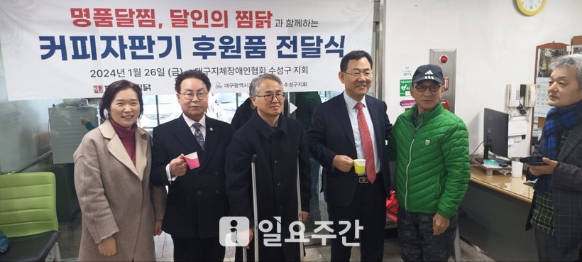 [일요주간=김영호 기자] 지난 1월 26일 오전, 대구지체장애인협회 수성구지회(수성구장애인 재활센터)에서 는 후원물품(커피자판기)전달식이 개최됐다.