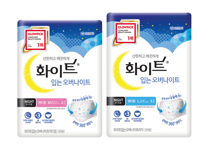 2014년 국내 최초의 팬티형 생리대로 출시된 ‘화이트 입는 오버나이트’는 속옷을 따로 착용할 필요 없이 입을 수 있는 팬티형 생리대로 밤새 뒤척여도 샐 걱정이 없도록 설계된 제품이다.