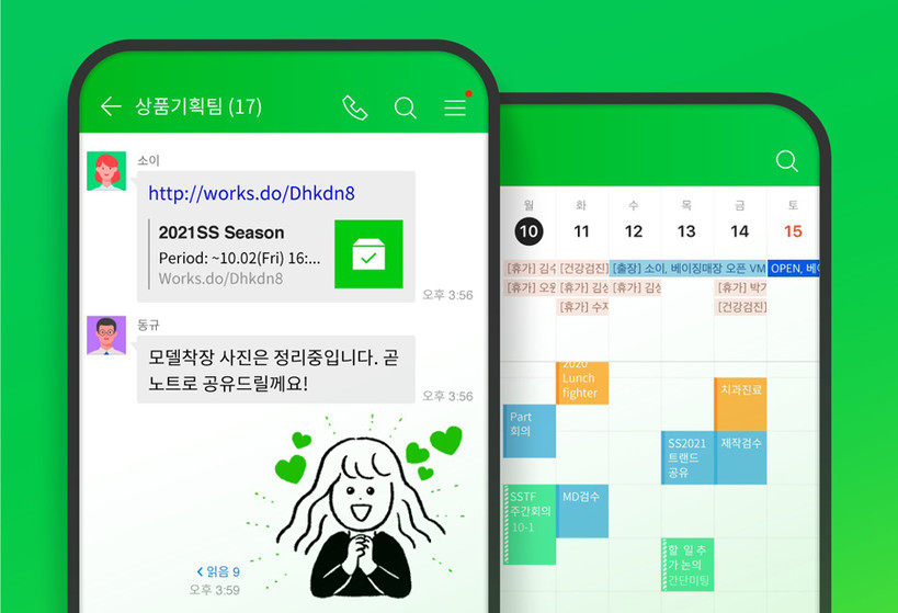 IT 업계에 따르면 국내 간판 IT 기업이자 라이벌 관계인 네이버와 카카오의 협업툴이 승부를 벌이고 있으며, 네이버의 자회사인 웍스 모바일은 협업 솔루션 라인웍스 브랜드를 한국에서는 라인웍스를 '네이버웍스'로 변경한다고 발표했다.