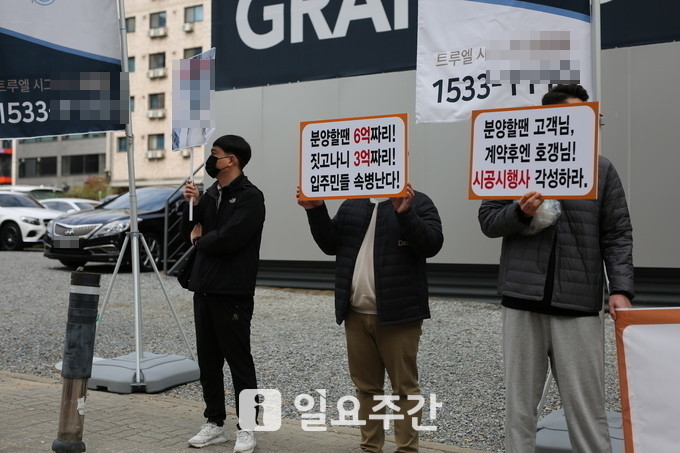 입주예정자 A 씨는 “(입주예정자들이) 천안에서 분양 중인 더트루엘 모델하우스 앞에서 (20일) 집회를 열겠다고 하자 일성건설에서 언론플레이 금지, 당사(일성건설) 관련 집회 금지, 지자체 민원 제기 금지 등을 합의사항 이행조건으로 내세우며 입주예정자들을 압박했다”고 주장했다.