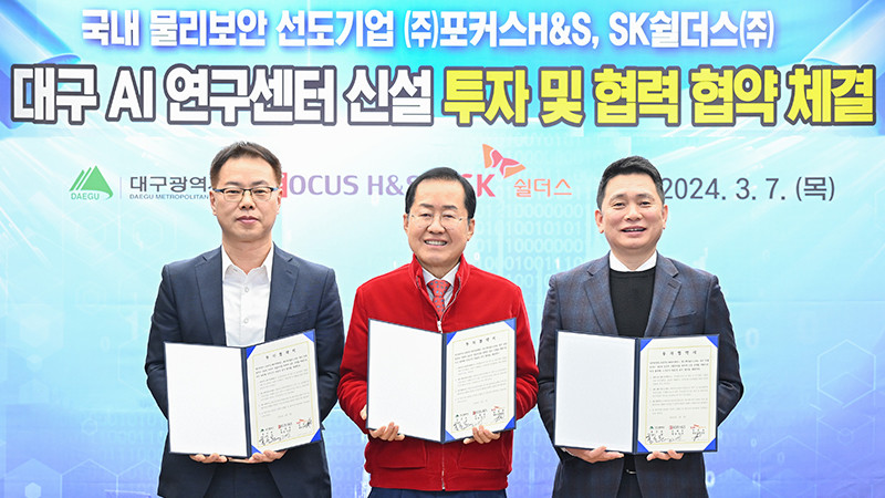 [일요주간=김영란 기자] 대구광역시는 3월 7일(목) 오전 11시 대구광역시 산격청사에서 ㈜포커스H&S(대표 김대중), SK쉴더스㈜(대표 홍원표)와 수성알파시티 내 ‘AI 연구센터’ 신설을 위한 투자 및 협력 협약을 체결했다.
