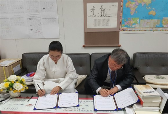 ▲ 한국 한글세계운동연합과 일본 동경한국학교와 상호우호협약(MOU) 체결 장면 |