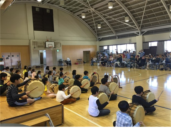 ▲ 일본 학생들이 배우고 있는 한국의 사물놀이 |