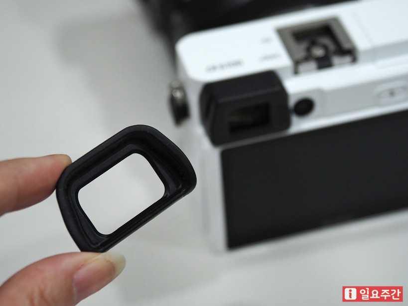 | ▲소니 A6100의 뷰파인더 부분에 장착하는 아이피스로 안정적 사용이 가능하다. (사진=지혜수 기자) |