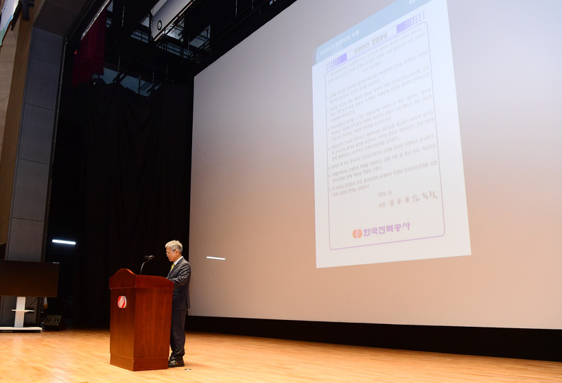 [일요주간=김영란 기자] 한국전력공사 (대표이사 사장 김동철)는 10월 30일(월)에 본사 한빛홀에서 안전 최우선 경영방침 확립을 위한 안전경영 선포식을 비롯한 KEPCO 안전문화의 날 행사를 개최했다.