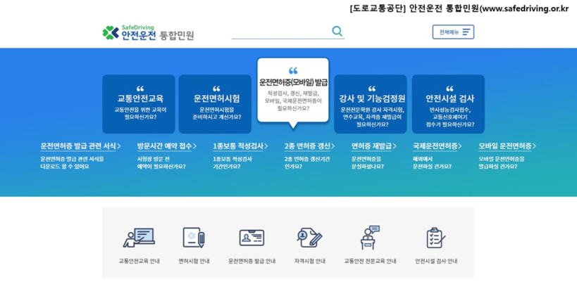 | ▲ 운전면허 갱신·적성검사 온라인 신청 - 안전운전 통합민원 홈페이지 (이미지=도로교통공단) |