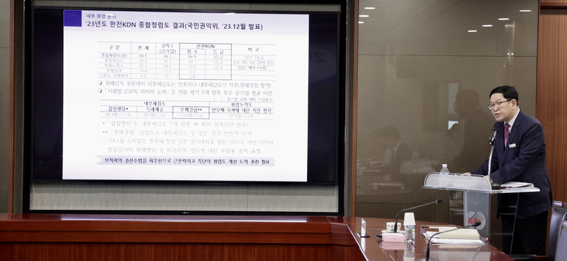 ▲ 2024년도 제1차 윤리경영위원회에서 종합 계획을 설명하고 있다.(사진=한전KDN) |