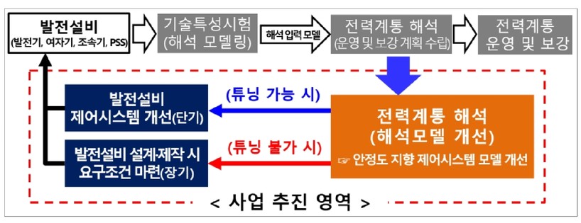 이에 따라 계통안정성 향상을 위한 현행의 계통운영상의 대책에 더하여 그간 국내에서는 시도되어 본 적이 없는 취약지역 발전설비의 제어시스템을 계통해석과 설비 영향을 정밀하게 모의하고 튜닝하여, 계통안정성을 향상시킬 수 있는 성능으로 개선하는 기술개발 사업이다.