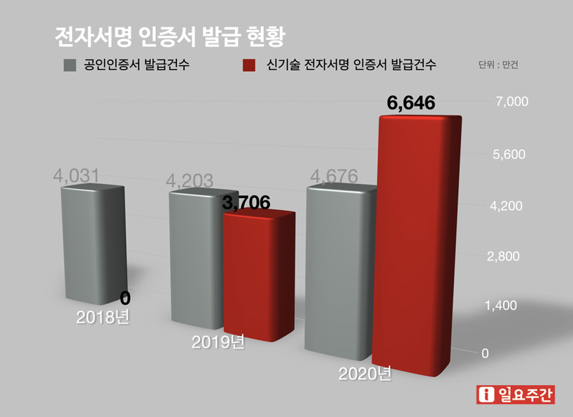 ▲전자서면 인증서 발급 현황 비교 그래프 (그래픽 제작=일요주간)