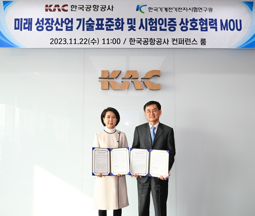 [일요주간=김영란 기자] 한국공항공사(사장 윤형중)는 22일, 서울 강서구 본사에서 한국기계전기전자시험연구원(원장 안성일)과 친환경 안전공항 구현을 위한 '미래 성장산업 기술 표준화 및 시험인증' 업무협약을 체결했다.
