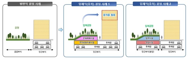 ▲ 공원시설 평면 결정 및 중복·입체 결정 개념도(예시) (이미지=서울시) |