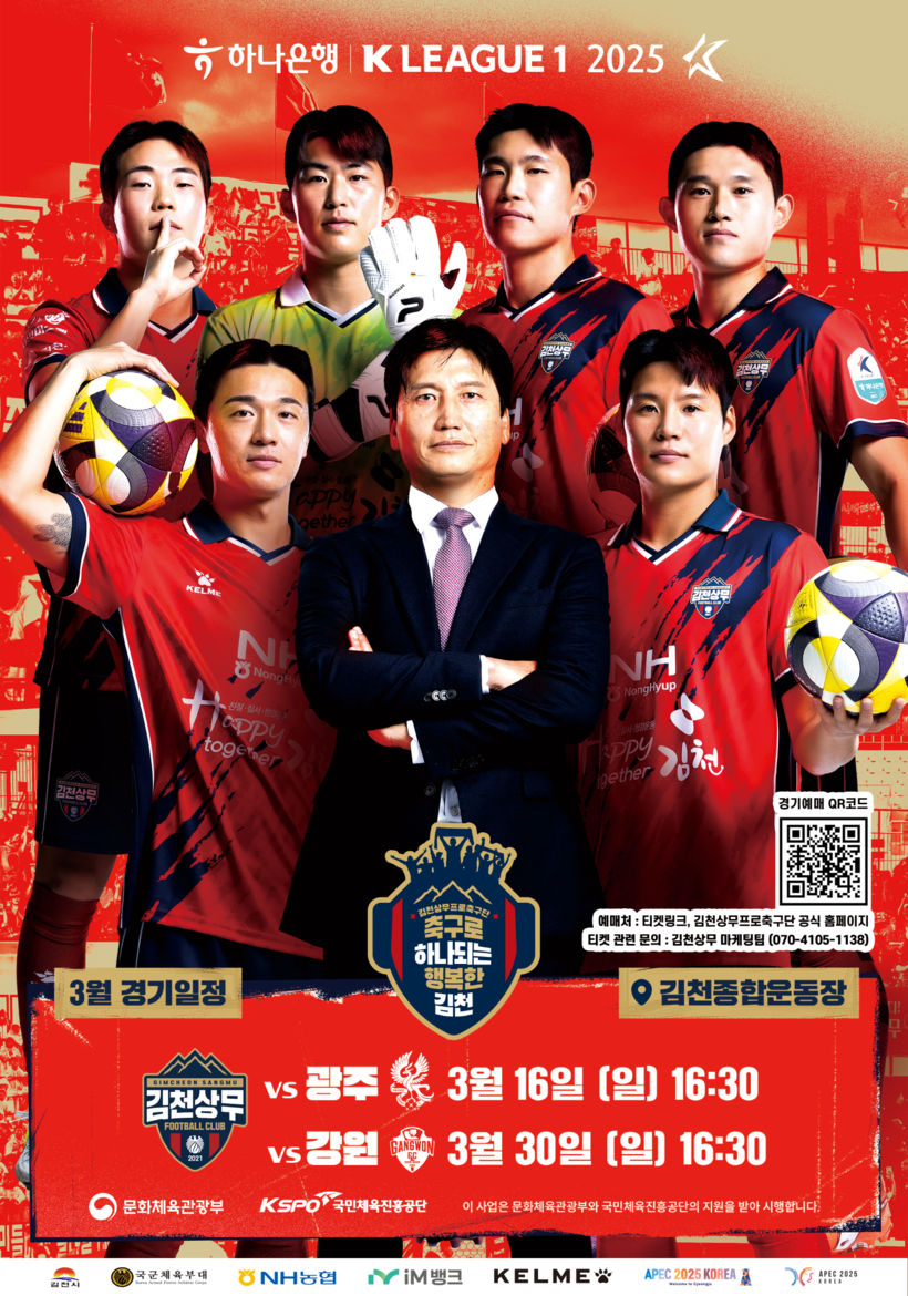 김천상무프로축구단(대표이사 이재하)이 16일 오후 4시 30분 홈 구장인 김천종합운동장에서 광주FC와 ‘2025 K리그1’홈 개막전 경기를 치른다.