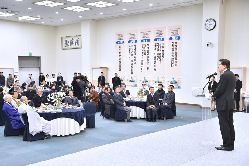 이날 행사는 시장을 비롯해 불교, 기독교, 천주교, 원불교, 천도교 5대종단 대표자와 지도자 등 80여 명이 참석한 가운데 ▲각 종단 대표자의 신년 메시지 전달 ▲공동선언문 발표 ▲시-종단 간 인사 및 환담 등이 진행될 예정이다.