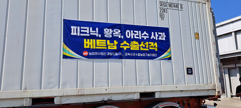 이번에 수출한 사과는 기상 악화, 착과 수 감소, 병충해 피해 등 어려운 여건 속에서도 경상북도 예비수출단지 지정이 예고된 애플진 사과 수출단지 농가의 땀과 정성이 가득한 고품질의 사과다.